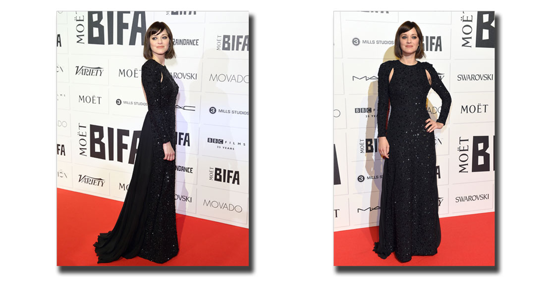 Le 6 décembre dernier, la cérémonie des BIFA (British Independent Film Awards), qui se tenait à Londres, a vu défiler sur son Red Carpet, tout un parterre de figures emblématiques du 7e art, au nombre desquelles, la Môme Cotillard, portait une magnifique robe noire signée Christian Dior Haute Couture. L’ambassadrice du chic français arborait une création en soie georgette, brodée de sequins, échancrée au niveau des aisselles et à dos nu. Un vrai bijou qui a fait crépiter les flashs sur Lady Macbeth en carré classique avec frange asymétrique mettant en valeur son visage ovale et ses yeux bleus. C’est d’ailleurs pour son interprétation exceptionnelle de ce personnage complexe dans l’adaptation du chef-d’œuvre de Shakespeare par Justin Kurzel, que Marion Cotillard était nominée dans la catégorie « Meilleure actrice », récompense finalement échue à Saoirse Ronan pour son rôle dans Brooklyn.