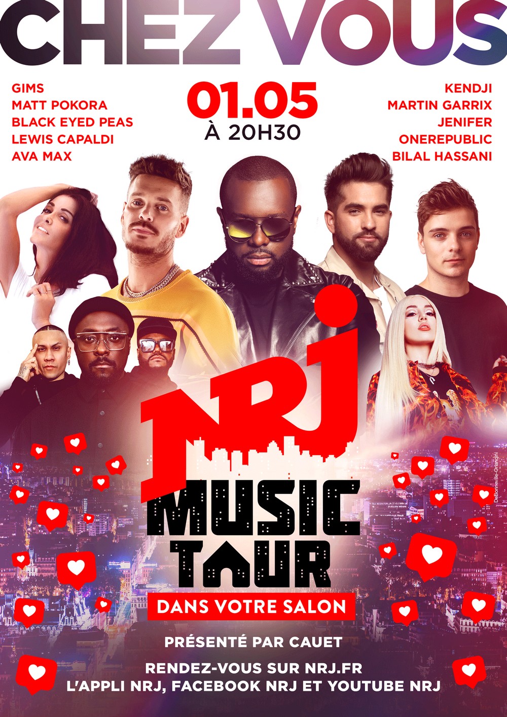 Après le concert solidaire aux Etats-Unis, au tour de la France d’offrir un concert exclusif à tous les fans de musique. Il s’agit de la plus grande tournée musicale gratuite en Europe, à découvrir depuis votre salon. Ainsi, ce vendredi 1er mai, à 20h30, NRJ vous propose son fameux « NRJ Music Tour » avec la participation d’un parterre de stars de la chanson. Au casting : Black Eyed Peas, Matt Pokora, Gims, Kendji, Lewis Capaldi, Ava Max, One Republic, Bilal Hassani, Jenifer et Martin Garrix. Le show sera animé par Cauet sur nrj.fr, l’appli NRJ, Facebook live et la chaine YouTube NRJ. Ainsi, depuis chez vous, virtuellement, vous retrouvez tous vos artistes préférés lors de cette grande soirée musicale. A ne surtout pas manquer !