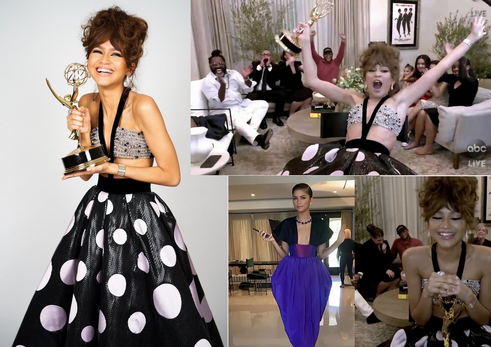 Entourée de ses proches, à la maison, la sublime Zendaya a littéralement sauté de joie en apprenant qu’elle avait décroché l’Award de la meilleure actrice. Et, elle a vraiment de quoi être fière. A 24 ans, l’actrice américaine est désormais la plus jeune lauréate du prix de la meilleure actrice dans une série dramatique. Elle marque ainsi l’histoire de la cérémonie des Emmy Awards avec son grand sourire radieux. De quoi largement remercier la série « Euphoria » qui fait office de réel tremplin pour sa carrière de comédienne. Fini le temps de Disney et des sitcoms pour la jeunesse, en interprétant une toxicomane repentie, Zendaya entre maintenant dans la cour des grands et son avenir dans le milieu semble tout tracé. Pour couronner le tout, elle concourrait face à de très grosses pointures, à l’instar de Jennifer Aniston pour « The Morning Show », Olivia Colman pour « The Crown », Jodie Comer et Sandra Oh pour « Killing Eve » ou encore Laura Linney pour « Ozark ». Rien que ça ! Connectée en vision depuis son salon, elle a déclaré avec humilité : « Je tiens à remercier l’Académie de la télévision, toutes les autres femmes incroyables de cette catégorie (…). Je vous admire toutes tellement. C’est assez fou. Je ne pleure pas vraiment. Merci à HBO et à A24 pour votre soutien. Merci à ma famille et à mon équipe ». Et même si elle n’a pas foulé le red-carpet, la belle a joué le jeu en portant deux superbes tenues : sur Instagram, quelques heures avant la cérémonie en live, elle s’était dévoilée dans une magnifique jupe en taffetas signée Christopher John Roger, haut noir et bijoux Bulgari. Plus tard, la voilà ultra-craquante dans une robe Giorgio Armani au bustier orné de bijoux et avec une longue jupe noire à pois blancs. « J’ai l’impression que c’est une époque étrange pour faire la fête, mais il y a de l’espoir chez les jeunes. Je sais que notre série télévisée n’en est pas toujours un bon exemple, mais il y a de l’espoir chez les jeunes. Et à mes pairs qui font le travail dans la rue, je vous vois, je vous admire et je vous remercie », conclut-elle.